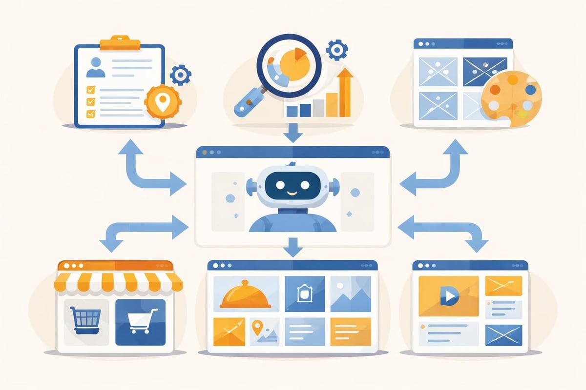 Automated Design Systems select color schemes, typography, and layout structures based on psychological principles and conversion optimization data. These systems continuously learn from A/B testing results across millions of websites to recommend design choices with proven performance metrics.