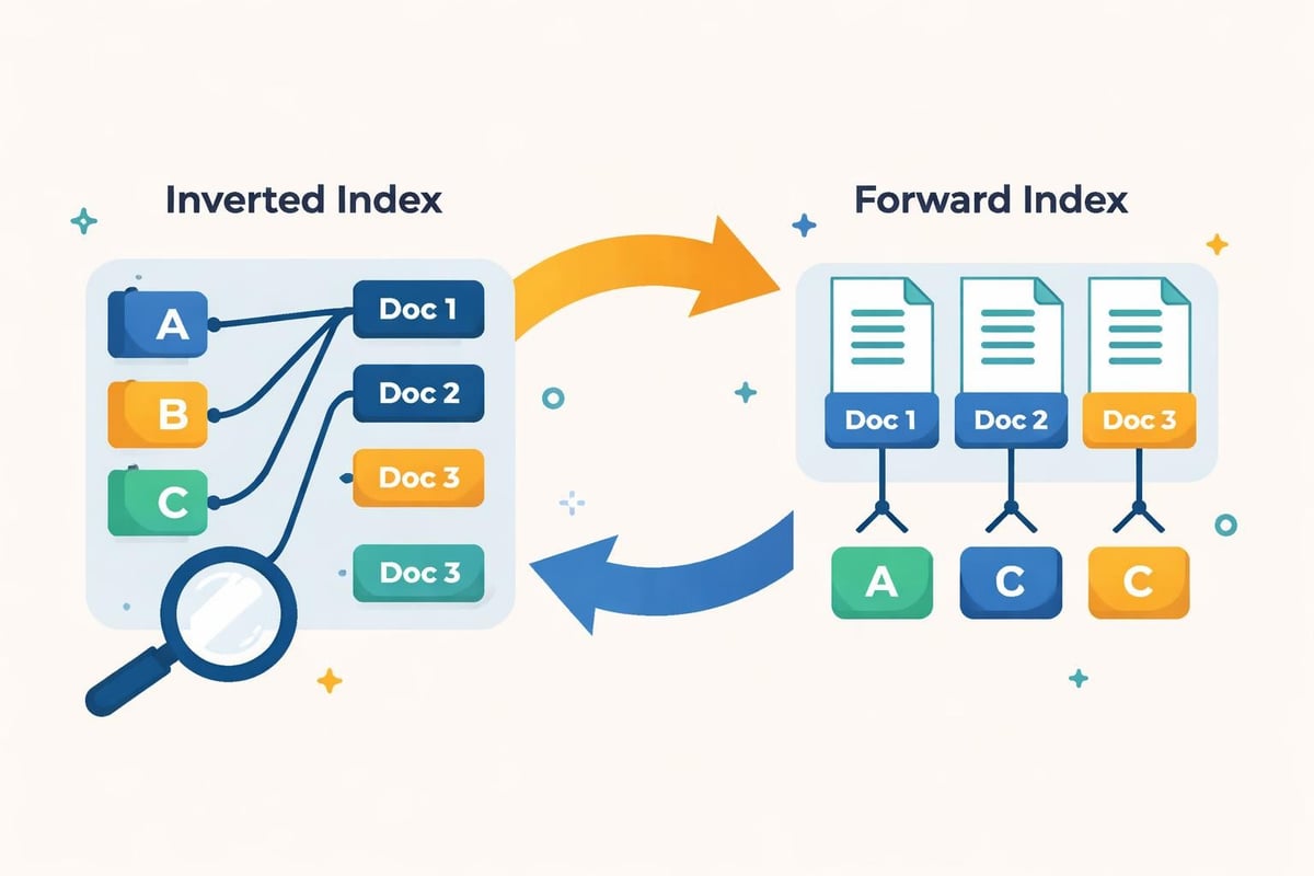 Forward indexes complement inverted indexes by mapping documents to their terms. This enables efficient snippet generation and document analysis. Together, these structures support fast query execution and rich result presentation.